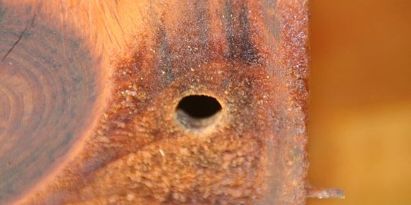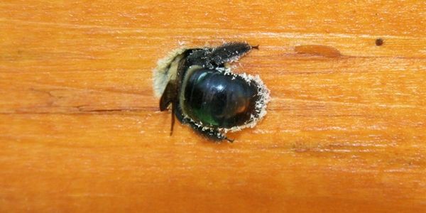 Carpenter bees get their name from the type of nest that they build. Their nest are constructed inside dead wood. Carpenter bees will bore holes into dead dry wood that looks like it was drilled with a precision drill bit. The holes are approximately 3/8 of an inch in diameter and can go 3 to 6 inches into the wood. It's the carpenter bee's nesting habit that people do not like. Our homes, porches, decks, and out buildings all make a perfect nesting place for carpenter bees.